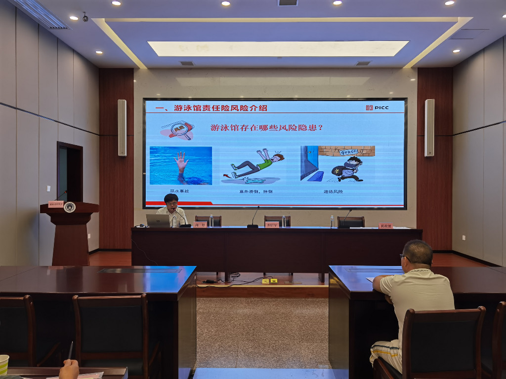 在全市游泳场所法律法规培训会议上,市支队邀请了保险专员讲授保险知识,为游泳场所合理购买保险,避免被坑作了很好的诠释,并在会上对升级版的保险方案予以推介,“政保共建”构建的“政府+保险公司+企业”的风险减量管理创新机制,得到了全市各游泳场所的一致认可。