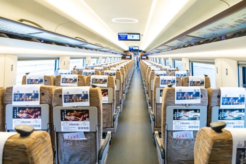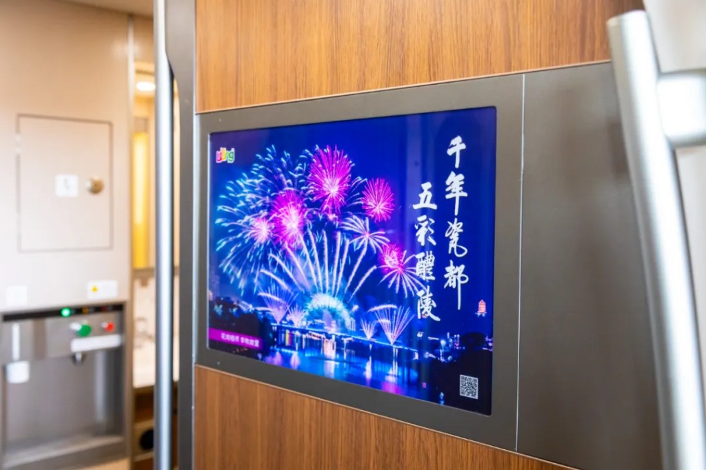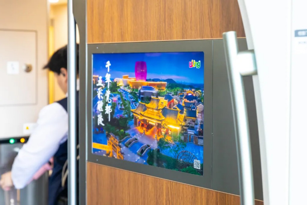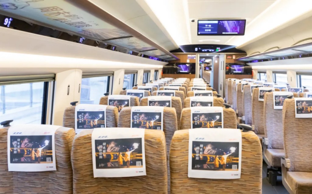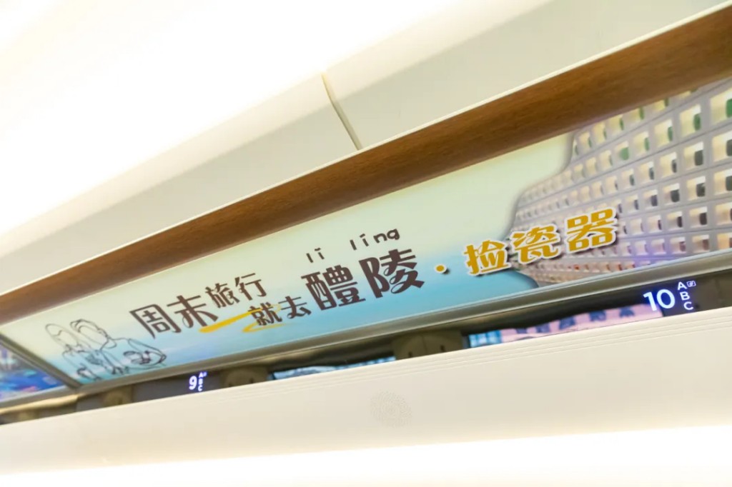 本次冠名的复兴号CR400AF列车,以“千年瓷都·五彩醴陵”为主题精心打造。车内,釉下五彩瓷图案的桌贴精致美观,“千年瓷都·五彩醴陵”字样的头枕巾温馨又有特色,烟花绽放画面的展板绚丽夺目……这些设计将醴陵的陶瓷、烟花文化与丰富的文旅资源巧妙浓缩于方寸之间。全车沉浸式的设计,让乘客从上车的那一刻起,便能全方位感受到浓厚的醴陵氛围。旅途中,乘客目光所及之处,皆是醴陵的独特魅力,仿佛置身于一个流动的醴陵城市文化展厅,开启一场美妙的文化之旅。