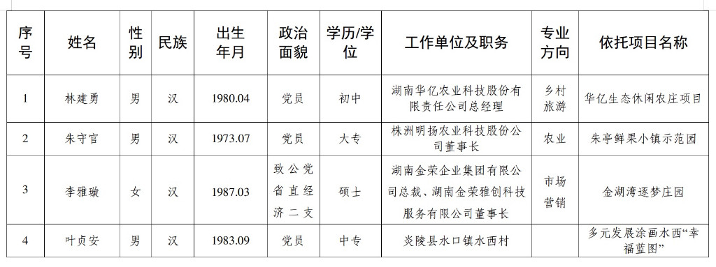 据湖南省文化和旅游厅《关于开展2023年芙蓉计划湖南省文旅人才支持项目乡村文旅能人申报工作的通知》文件要求,经区县(市)局初审推荐评选,市文旅广体局党组研究,现将2023年度乡村文旅能人拟推荐对象予以公示。