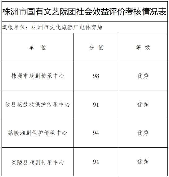 关于2023年国有文艺院团社会效益评价考核等次结果公示